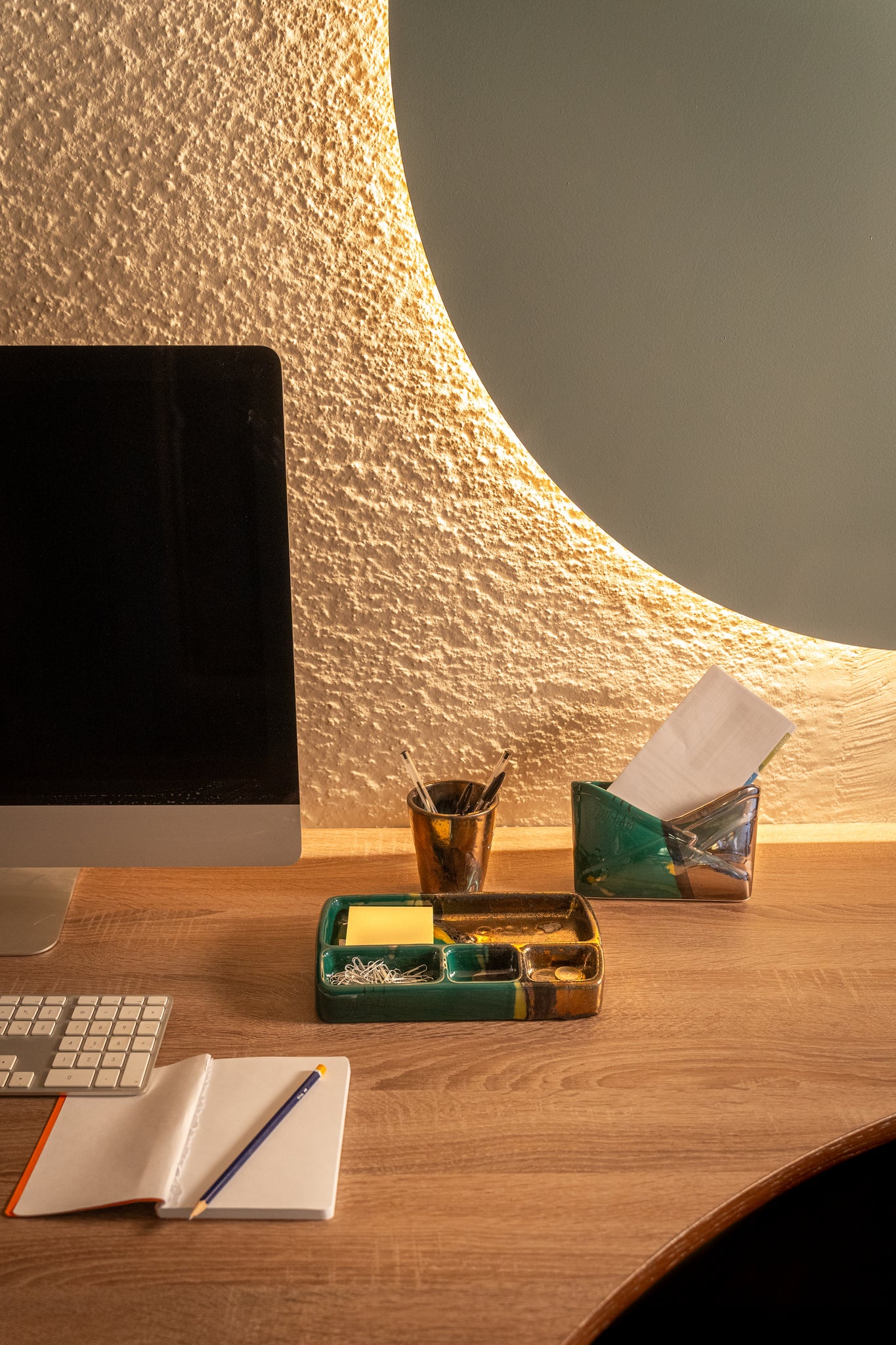 Set Ufficio in ceramica dipinto a mano. Composto da vassoio organizer e due cubi porta penne estraibili.Misura Vassoio: 24x15 cmMisura Cubo: 7x7 cm